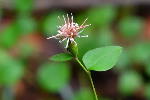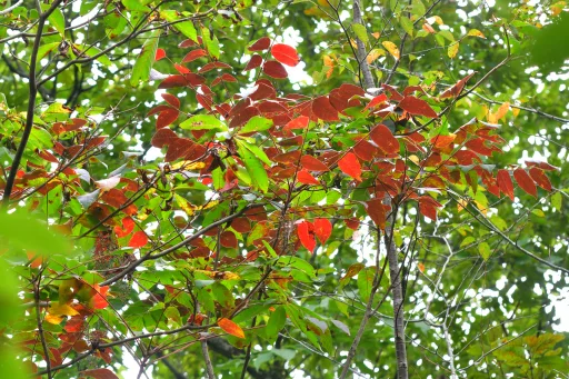 やっと森歩きに快適な気候になり、初参加の5歳男児を含む22名でヤマモモ広場を出発しました。林道沿いのシロダモは前年の花の実が来月には赤く熟し黄色の花が同時に見られます。マツカゼソウの花は実になっており、葉を揉んで香りを確かめました。大曲のオオバウマノスズクサの実は茶色に枯れてぶら下がり、ジャコウアゲハの蛹(お菊虫)は見つかりませんでした。その側のスルガテンナンショウのトウモロコシ形の艶やかな緑色の実は赤く熟しても有毒です。第2管理道入口のアケボノソウ群落は鹿害のせいか今ではわずかに残るだけになり、アキチョウジも減ってしまい残念です。WC周辺ではツクバネの実、ナナカマドの実、エリマキツチグリ、キッコウハグマの蕾などを観察し、北歩道に入るとコウヤボウキの花があちこちで咲き始めていました。1年枝の先端に付く花は微かな甘い香りがします。地面に赤い実が何個も落ちており見上げると、アオハダの緑の葉の間にたくさんの実が見えました。三叉の手前のウラジロノキはリンゴ属、実をかじってみた男の子の感想は酸っぱい!でした。三叉の渓流沿いの数株のアケボノソウの花を楽しみ、昼食休憩をとり、帰路の林道脇ではサルナシの実が多数ぶら下がっているけれど手が届きません。数日来の降雨のせいで何種類もの色とりどりのきのこが見られました。ヤマモモ広場での解散後、変電所前の空き地でススキの根に寄生したナンバンギセルの花を見、秋の観察会を終えました。