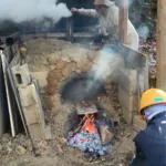 午前中は白い煙がモクモクと勢いよく上がっていたが、昼過ぎからは次第に透明感のある白い煙となりさらに薄い青色へと変化していった。煙突排気口の温度も250℃まで上がり、これまでになく順調な経過で、どのような炭ができているか次回の炭出しが楽しみだ。