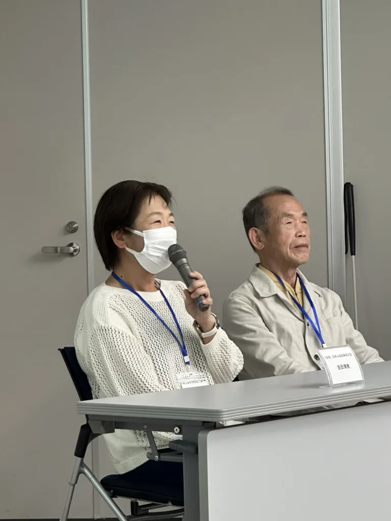 そして視点③「視覚障がい登山者の思い」は、東海支部員であり、全盲の登山者として、山田弘さんと吉田清恵さんに語っていただいた。お二人からは、普段あまり聞けない心の内を聞くことができ、私達の存在意義や必要性を再認識する事もでき、胸が熱くなった。